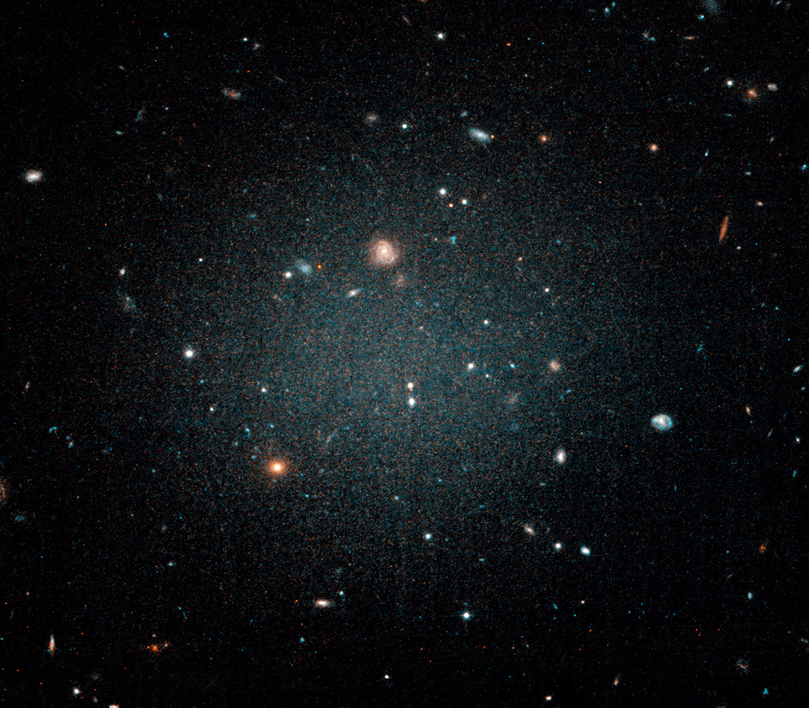 “I spent an hour just staring at the Hubble image,” says van Dokkum, “This thing is astonishing: a gigantic blob that you can look through. It’s so sparse that you see all of the galaxies behind it. It is literally a see-through galaxy.”