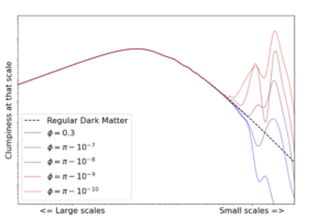 Axions with high starting angles are clumpier on small scales, while axions with low starting angles are less clumpy on small scales. Credit: Harrison Winch.